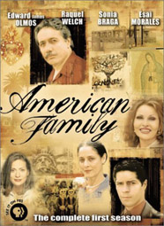 A PBS TV series that assumes the responsibility of providing quality drama with a Mexican-American theme, American Family is a good soap burdened by a well-intentioned mission to provide Latinos with rightful pride in their heritage as Latins and their birthright as American citizens. Beautifully produced and directed, its content consistently brings up issues that make the Gonzalez family of East Los Angeles the focus of all Liberal thought on the subject. The brainchild of Gregory Nava, a noted hyphenate with top credits to his name (El Norte, Selena, Frida), the series has heart, some humor, and a lot of drama, all linked to the Latino experience. The Gonzalez clan is led by father Jess (Edward James Olmos, a talent synonymous with Latino pride), an old-fashioned Latin male. A Korean war veteran, he runs a successful barbershop. In the pilot, Jess and his wife Berta (ex Brazilian bombshell Sonia Braga of Doña Flor and Her Two Husbands & Gabriela) are nearing retirement age, and their grown children are trying to relocate them in a very Gringo condo somewhere out of the city. When Berta suddenly dies, Jess stays in the old house, and becomes sort of a passive Archie Bunker character, reacting to all the progressive developments that his children bring home. Esai Morales, still best known for La Bamba, plays Jess' son Estaban, who took the rap for his own drug-addict wife (Seidy Lopez) rather than let their let their baby be born in prison. His subplot gives the Gonzalez family a problem with the law, but confects a plea of innocence that in context comes off as a mild whitewash. The wife is cruelly ostracized by legal decree, and the constant harassment by social workers and parole officers - who seem to have lots of time to devote to this one case - gives the Gonzalez family a mild persecution problem to 'rise above.' Now Esteban is out on parole and doing well as a trainee fireman, but may lose custody of his child to the authorities. That's where sister Nina (Constance Marie) comes in. An assertive lawyer and the brains in the extended family, she passes up a Washington job for Congresswoman Gloria Molina to stay home and serve as the responsible adult for Estaban's son. In exchange for her sacrifice, she moves her liberal-issues law office into Jess' sunroom. Also bolstering Jess in his newfound widower-hood is Aunt Dora, played by the still-ravishing-at-62 Raquel Welch. Dora has her own problems with a daughter who purposely becomes an unmarried mother. Besides being marquee bait, Welch gets to show off her talents as a light comedienne, which are substantial. Nina brings home all manner of cases that point up Latino concerns: immigration (in the pilot, she hides a Canadian illegal alien, making the point that all illegals aren't Latin), Latino rights, Latina pride. And this is where the series becomes a tad strident, for too often the whole point of the show is just a bit too rah-rah for everything Latin. When it concentrates on the characters, it's Socially Conscious Drama, but most every show has a big Agenda Issue to push, if not several issues. The characters run into trouble with the law, and argue among themselves about how life should be lived, Latino style, in the 21st century. Other family members include sister Vangie (Rachel Ticotin), a stereotyped Yuppie who's relocated to the West side of town and is a successful fashion designer, brother Conrado (Kurt Caceres) the doctor in the family, and brother Cisco (A.J. Lamas), whose internet and video-hip activities provide an excuse to jazz the series up with cyber-visuals. Providing a traditional alternative to all the progressive directions the family seems to be following, are Jess' frequent daydreams of Berta, his wife who began as an illegal. Some of the best episodes recount their experiences as a young couple. Both look great in the flashbacks as they essentially need to be made up to look aged, and the poignancy of their relationship is the best thing about the whole show. One of the best episodes keeps cutting back to a Mexican revolution story about La Coronela, a relative who was a female soldier. Thus the series, which must have been beset with demands to cover a broad range of issues, has a strong feminist agenda as well. All of this is fine when the drama is good, or the content of is of interest. A two-parter is a spirited retelling of the Mexican folk horror tale about La Lorona. Several episodes in this first series are fantasy-oriented, such as the one where Jess dreams of a television sitcom about his barbershop, starring his friends and family. At least one of these appears to be an attempt at Magical Realism, when a Comet causes everyone to fall in love. If you love the characters, and they do grow once we get a couple of episodes past the pilot, American Family will be a riveting experience. For this reviewer, there's a resentment factor when Esteban's side story at the fire house is used to drag in lessons about gangs and Latino solidarity, or Nina's law practice seemingly only takes on progressive issues, one after another. The advantage of the series is that there's enough time to cover a lot of material. Mr. Nava's feature films, such as My Family, always seemed to be compromised by the necessity of being about Latino pride first, and then a good drama. It's a problem of aims and means. Latin artists are keenly aware of their under-representation in American television, and American Family was obviously conceived to serve a social purpose. I agree entusiastically with almost every attitude advanced in the series, yet bridle a bit when the shows uses its time to so obviously preach at me. There are millions of Hispanic households at which this show is aimed (there's even a second Spanish-language dub track) and I suppose that social scientists would consider the show well-engineered to raise the level of Latino self-awareness. American Family, The Complete First Season on DVD is a beautiful set of d
