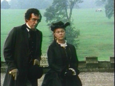Set in 1876 during Benjamin Disraeli's (Richard Pasco) second run as Prime Minister, Dizzy juggles the political tribulations that plagued the aging, ailing Disraeli during his government, with the personal romantic obsessions he suffered/encouraged/reveled in with various unattainable married women of nobility. His greatest political threat at this point came from the Russian bear's expansionist policies, a menace that threatened Turkey and which required the utmost tactical skill on his part to thwart - without bringing England into war. Certainly, Disraeli's extremely close relationship with his Queen, Victoria (Zena Walker) gave political stability to his policies (particularly in the face of opposition by Gladstone), but it also provided a romantic subtext to his relentless, sometimes scattershot pursuits of married aristocrats. Lady Selena Bradford (Elizabeth Sellars) becomes increasingly frustrated with Disraeli's overbearing pursuit of her, particularly as her husband was counted among Disraeli's close friends. Bombarding her with unasked-for, unwanted visits and little love notes, she finally relents, allowing him the pleasure of giving her one of his treasured golden bee pins. But for Disraeli, at least in Feely's script, the constant pursuit of idealized, romantic love with an older woman of aristocracy is far more important to Disraeli than actually consummating such a relationship, so other women fall under his assaults, as well, culminating in his most savored victory: a request for a golden bee pin from Victoria herself. Having earlier reviewed an excellent BBC mini based on Disraeli's life (with Ian McShane doing wonders with the character), this necessarily truncated snippet of Disraeli's life suffered by comparison (if one is looking for a complete picture of the politician's life), but it was quite good at getting across the curious romantic obsessions Disraeli had during his later years. What fueled those pursuits is subject to interpretation, but here, it seems Feely is getting at them as a way of highlighting Disraeli's fear of getting older and sick right when he's reached the pinnacle of power, as if it's too late to be an effective P.M.. Disraeli, a passionate booster of English imperialism ("I am not ashamed of the noblest of human sentiments, now derided by philosophers: the sentiment of patriotism."), executes a remarkably "adroit" maneuvering around the Russians, a political act that should have brought him great satisfaction, but one that had little meaning without the corresponding knowledge that he held the attentions of several women ("Fame without a woman is ashes in the mouth."). Pasco is excellent at showing Disraeli rousing himself from increasing infirmity ("Lord, I know that suffering is a mark of thy love, but just once, wouldn't a headache do?") to slather buttery flattery on the noblewoman who happens to be in his sights. It's a tough performance to get right (weak physically but indomitable in romantic fancy), but Pasco does it admirably here.