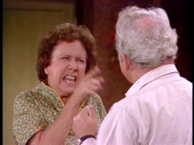 A couple of episodes this season come close to reminding us of the series' glory days―at least in terms of attempting to say something significant about a current sociological or political issue. Edith Versus the Bank finds an increasingly angry Edith discovering the discriminatory practices of lending institutions when a "mere" housewife is the lendee (Stapleton gets a chance to really rage at a dismissive O'Connor here, and she's terrific). And Stephanie's Conversion, where Archie and Edith discover that Stephie was originally being raised Jewish, hints at possibilities we can only dream of, had this episode come out four years earlier (Archie's acceptance of the situation, while gratifying, is entirely without conflict...so what's the point?). Edith Gets Fired is a beautifully-acted episode by Stapleton which explores Edith's culpability when she lets a patient at the Sunshine Home die with dignity. And the hour-long California, Here We Are puts a final coda on the Stivics' separation from the Bunkers, when Edith and Archie discover that all isn't well with Gloria's and Mike's marriage (it's fun to see the original cast together again in this funny, energetic episode). As good as these episodes are, though, they are but faint reminders of how the series crackled and hummed with similarly-themed outings; they serve only to jog our memory about how great All in the Family used to be.