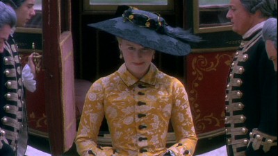 --A feature-length audio commentary with director Frears and writer Hampton is curiously, almost funnily subdued; if you want an example of cultural differences between Brits and Americans, listen to the long, long spaces left by the reticence of these two older Englishmen to speak out of turn or out of place. When they do talk, however, what they have to say is quite revealing about the sometimes surprisingly gossip-juicy details of the shoot (those costumes understandably made for some cranky actors on occasion) and the long development of the project. Frears's comments on "finding" the film with the camera and the actors is both fascinating for us laypersons and of informative value to any aspiring filmmakers. (He assumed it would be a Max Ophuls/Barry Lyndon type of thing but found that the material and performances would be better suited to the Bergman-like approach that we have in the finished work, with a fine but restrained consciousness of the space around the actors alternating with almost violating close-ups on faces, which definitely bear out his finding.)