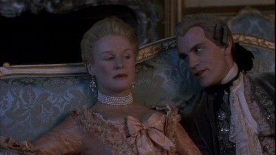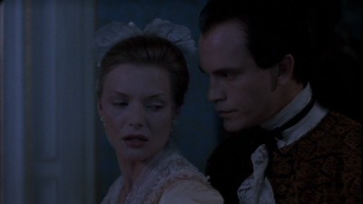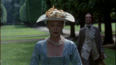 I'm very ambivalent about the studios' habit of releasing films shot and originally shown at a 1.85:1 aspect ratio as DVDs and Blus that present the feature at a 1.78:1 aspect ratio, as does this edition of Dangerous Liaisons. (It's particularly annoying that they try to pass it off as "1.85:1" on the packaging, which amounts to either a negligent or purposely misleading claim.) However, every resource I can find says the difference is "nil," and there is no noticeable problem with or deficiency in the widescreen image as it's presented. On the aspect ratio front, it's no different from the DVD, which was also 1.78:1, but the actual picture quality is vastly, vastly improved. Making the comparison to my old DVD edition, I could barely stand to watch that prior release's murky, blotchy, patchy transfer after having been treated to the conscientious restoration of the film's visual glories when watching the Blu-ray. Cinematographer Philippe Rousselot's supple and very skillfully-lit shots (with many nuances of shading and light and cool and warm colors, as necessitated by the pre-electric-lighting period of the film) are faithfully rendered, with no noise/over-noise-reduction, aliasing, or edge enhancement to be seen. A superb transfer of a superb-looking film.