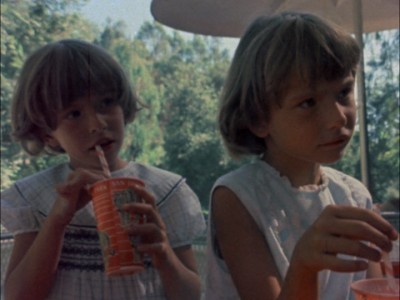 Poto and Cabengo was inspired by a news story that caught Gorin's eye not that long after he landed on these shores: a set of female twins born to a working-class San Diego couple and initially thought to be mentally handicapped had stunned speech therapists and linguists by apparently developing their own private language, understandable only between themselves (thus they are "Poto and Cabengo" to each other, though their given names are Virginia and Grace). Gorin arrives at the family's tenement dwelling with his 16 mm documentary filming setup, his voice-over narration explaining to us that matters of language and foreignness hold a natural fascination for him at least in part due to his own disoriented situation as an immigrant. As the media hubbub is progressively revealed to be oversimplified and inaccurate, Gorin turns to sources--the twins' therapists and counselors, linguistic experts, and, primarily, their parents and their grandmother--to explore the richer complexities underlying the situation. Their mother, Christine, is, like Gorin, an immigrant--a German who met and married her husband and the twins' father while he was stationed by the Air Force in Germany. Now, with her husband a struggling real-estate agent, she has settled the family in San Diego and moved her non-English-speaking mother in from Germany to aid with child-rearing and housekeeping duties, creating a unique linguistic environment that, in addition to the parents' medically-reinforced assumptions about the "delayed" twins's suitability for socializing, surely has something to do with their creating what sounds like a new language for themselves.