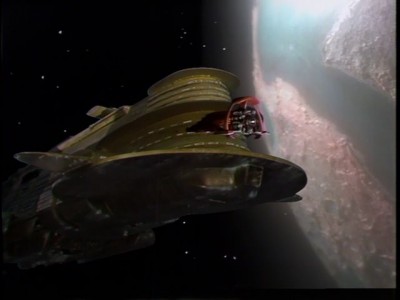 There are a few things that don't work well in this story, but a lot that does. On the bad side are the special effects. Yes, they're lousy and some of the people that created them claim that the reason the processed shots appear so lame and the space ships look like the models that they are is because these parts were recorded on video tape to save money instead of film. While I agree that they would have looked significantly better on film, and the models are well made and detailed, I don't think shooting on film would have improved things significantly. Let's admit it: the SFX from this era of Doctor Who always look pretty cheesy.