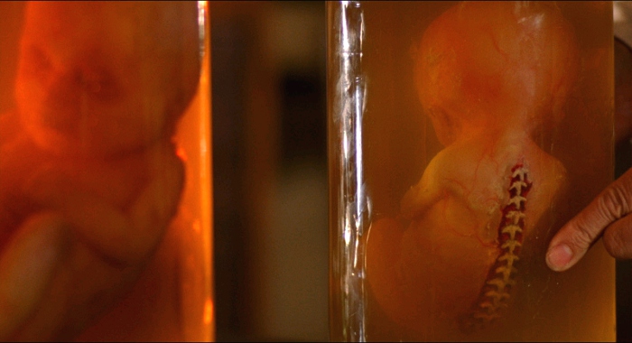 New to this Criterion Blu-ray, of course, are four Video Interviews. "Summoning Spirits" (14 minutes) features del Toro as he talks about Santi's creation and the visual effects that were used to do it. "Spanish Gothic" (18 minutes), again featuring the director, includes details about the story development and several comparisons to his own Pan's Labyrinth. "Designing The Devil's Backbone" (13 minutes) obviously focuses on the film's visual elements, including makeup and prosthetic work, storyboards and graphic design. Finally, "A War of Values" (16 minutes) features Spanish Civil War historian Sebastian Faber and his thoughts on the film's political themes. Finally, we get a Theatrical Trailer (3 minutes). All bonus features have been presented in a mixture of 1080i and 1080p resolution, with optional English subtitles occasionally offered for Spanish translation purposes only. It's a fine mixture of supplements, especially since all of the previous Region 1 DVD extras have made the transition to this release.