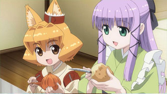 Yuzu is a young girl who runs an antique shop that specializes in old pottery. She barely scraps by, which is a bit surprising because she lives with (and supports) a god, Mayu. It turns out that there are thousands of gods, and Mayu, the cat god of lost items and forgotten memories, is a lazy and self-indulgent one. She has been kicked out of Takamagahara (the home of the gods), stripped of her powers, and banished to Earth in order to teach her a lesson. Not that it's doing too much good. Mayu is still pretty indolent and when she does exert any energy she mainly gets into trouble.
