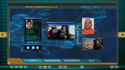 The 22 episodes of the first season of Agents of S.H.I.E.L.D. are spread over five DVDs, which likely arrive in some sort of retail packaging (unlike the discs we received.) The discs have nice blueprint-themed animated, anamorphic widescreen menus, with options to play all the episodes, select shows, check out extras and adjust the set-up. There are no audio options, but subtitles are available in English SDH, French, Spanish, Portuguese, Thai and Chinese.
